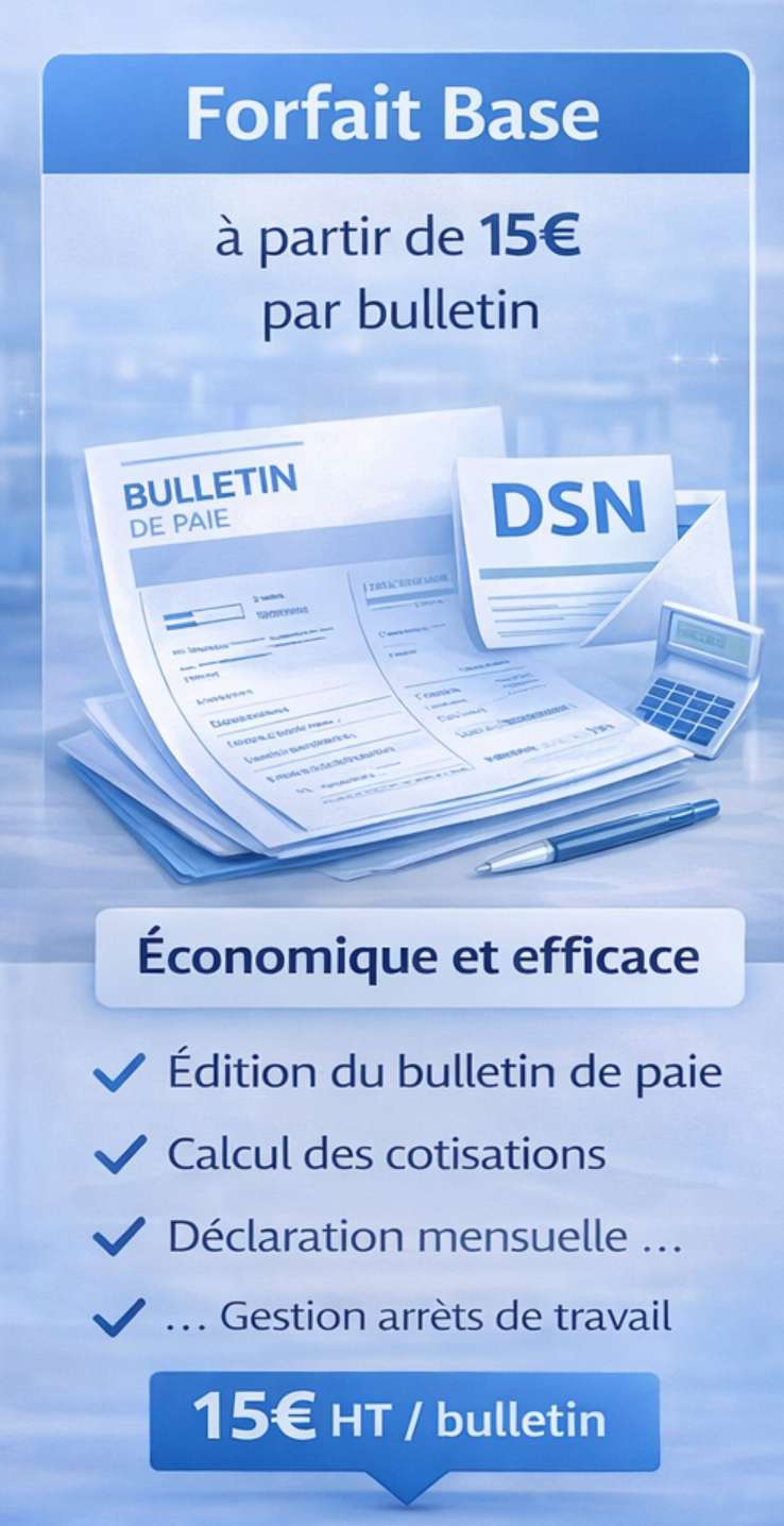 Le forfait Base à 15 € HT par bulletin de paie constitue une solution simple, efficace et économique pour les entreprises souhaitant externaliser leur gestion de paie.
