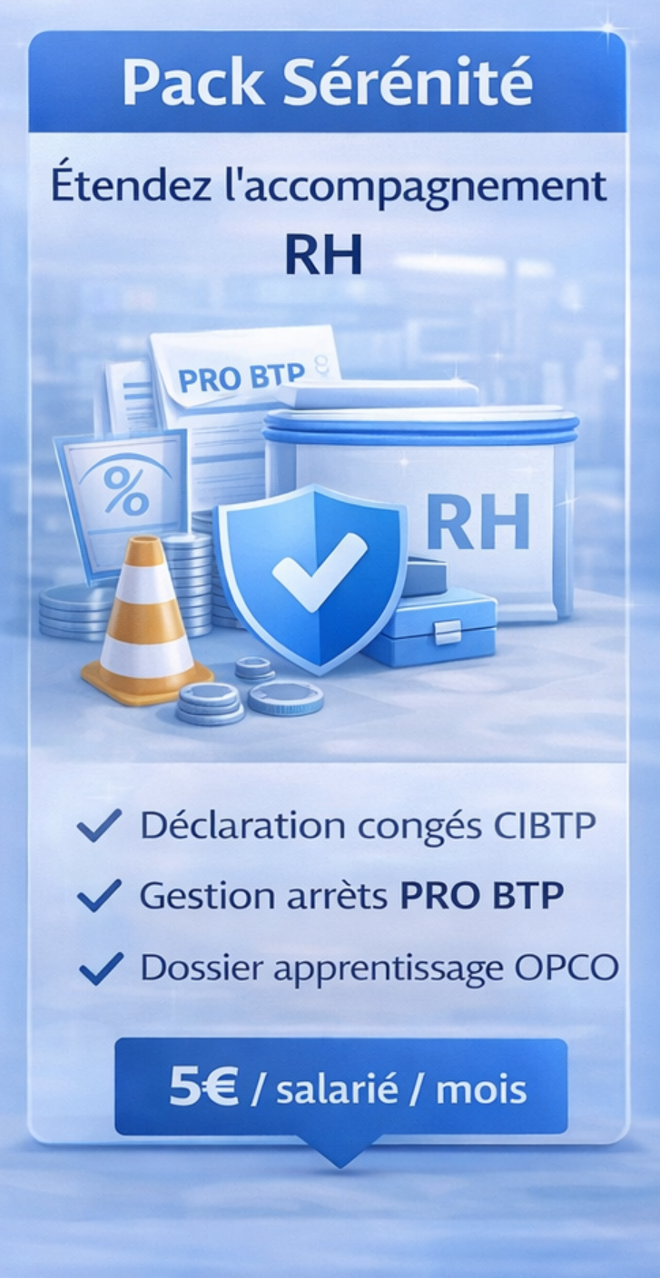 - La gestion des formalités spécifiques BTP (déclaration des congés auprès de la CIBTP)